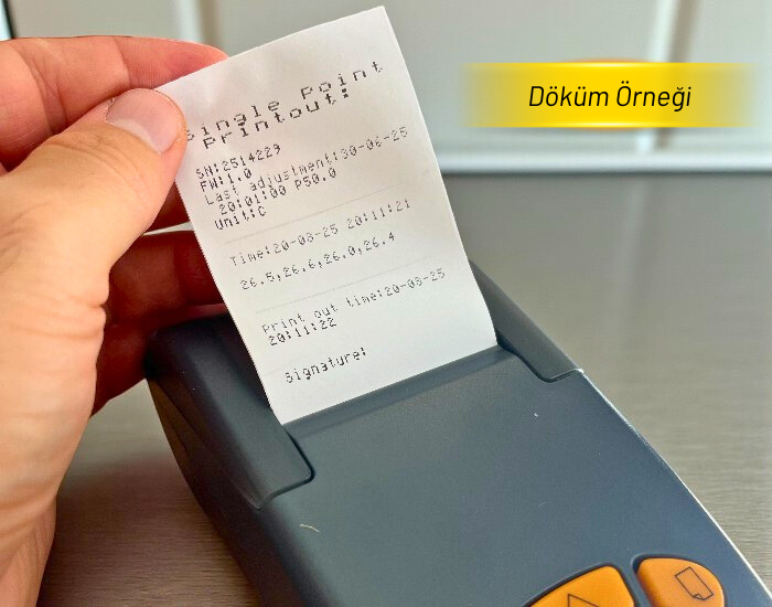 AZ 88998 termal yazıcı; ölçüm verilerinin sahada ya da laboratuvar ortamında anında dökümünü almak için tasarlanmış ekonomik fiyatlı bir yazdırma çözümüdür. Yalnızca AZ 88594, AZ 88595 ve AZ 7702 cihazlarıyla tam uyumluluk gösteren bu yazıcı, kullanıcıların elde ettikleri ölçüm verilerini hızlı ve güvenilir şekilde kağıda aktarmasına imkân tanır. Yazdırma işlemi için ısıya duyarlı termal kâğıt rulo kullanıldığından, mürekkep veya toner gerektirmez; bu da hem düşük bakım maliyeti hem de uzun süreli kullanım avantajı sağlar. Kompakt ve taşınabilir yapısıyla öne çıkan AZ 88998, ölçüm sonuçlarının sahada doğrudan belgelenmesi gereken endüstriyel, bilimsel ve teknik uygulamalarda kullanıcıya önemli kolaylık sunar.