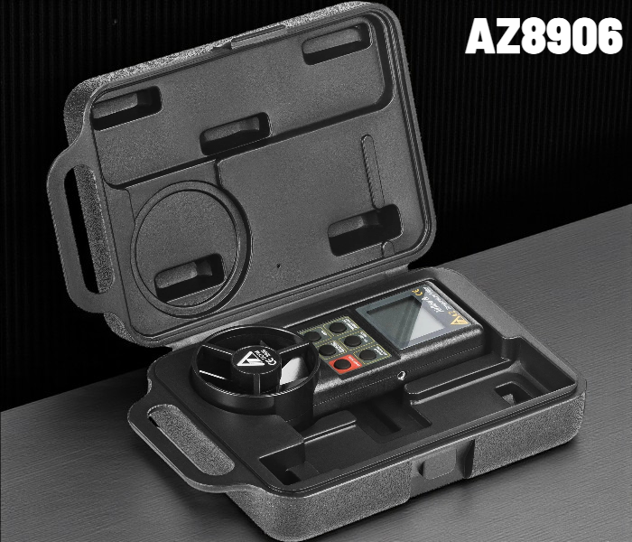 AZ 8906 profesyonel sınıf anemometre cihazı; doğru hava hızı, hava hacmi (debi) ve hava sıcaklığı ölçümleri sağlayan hassas bir rüzgar ölçer cihazdır. AZ 8906; düşük sürtünmeli döner pervane sayesinde ve geliştirilmiş doğrulukla birlikte 2 saate kadar sürekli hava hızı ortalaması ölçümleri yapabilme kapasitesine sahiptir ve çift satır ekranında hava hızı ile birlikte sıcaklığı eş zamanlı olarak gösterebilme özelliğine sahiptir.