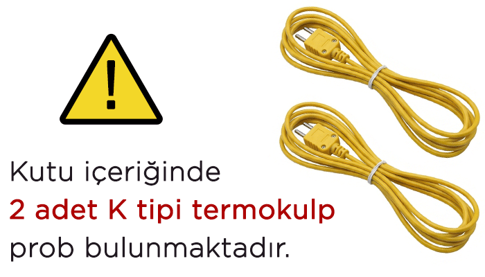 AZ 88598 datalogger cihazına maksimum 4 adet k tipi termokupl bağlanabilir. Yukarıdaki görselde takılan problar temsilidir, kutu içerisinden çıkmamaktadır.