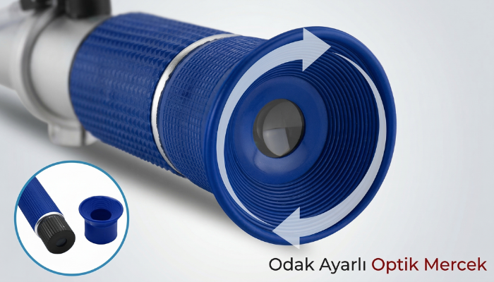 - Ürün kutu içeriği; 1 adet refraktometre, 1 adet damlalık, 1 adet tornovida