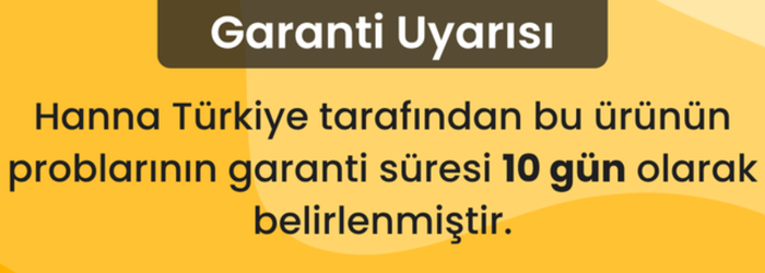 | Kalibrasyon | En fazla üç veya dört farklı *Hanna (pH 1.68*, 4.01, 7.01, 10.01) çözeltileriyle otomatik tampon tanıma |