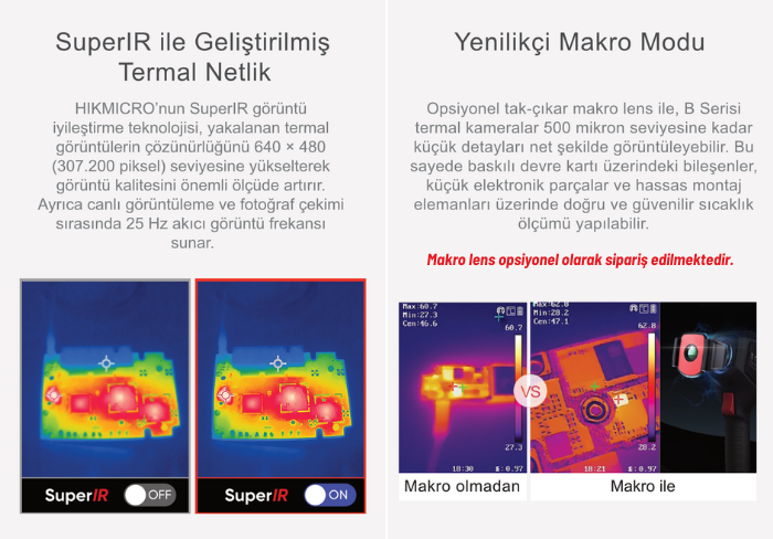 - HIKMICRO SuperIR görüntü geliştirme teknolojisi, hem canlı görüntüde hem de kaydedilen termal görüntülerde detay seviyesini artırarak daha keskin ve anlaşılır analiz yapılmasına imkân tanır.