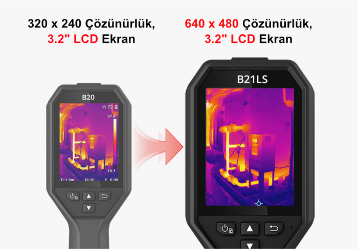 B21LS termal kamerada bulunan 3.2" lcd ekran, bu kategorideki diğer ürünlere göre %75 daha büyük bir görüntüleme alanı sunar.