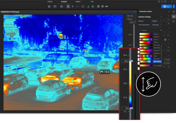 - HIKMICRO Analyzer yazılımı ile kaydedilen radyometrik termal görüntüler detaylı şekilde analiz edilebilir ve profesyonel raporlar oluşturulabilir.