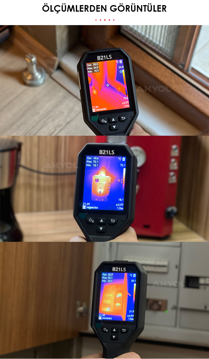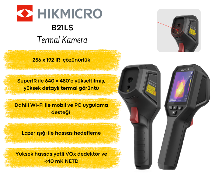 Stokta olan ürünler 15:30'a kadar sipariş verilmesi durumunda aynı gün kargoya teslim edilmektedir. (Hafta sonu ve resmi tatiller hariç)B21LS, günlük endüstriyel kullanım için yüksek performanslı, elde taşınabilir bir termal kamera çözümüdür. Yüksek çözünürlüklü ekranı ve SuperIR görüntü iyileştirme teknolojisi sayesinde, görünmeyen ısı farklılıklarını hızlı ve net şekilde tespit eder. Geniş sıcaklık aralığı, güçlü ölçüm doğruluğu ve dahili Wi-Fi ile sahada hızlı analiz ve paylaşım imkanı sunar. Elektrik, bina, HVAC, bakım ve arıza tespit uygulamaları için idealdir.