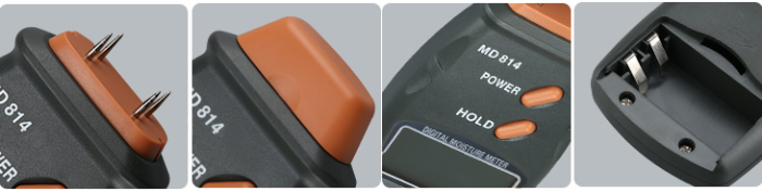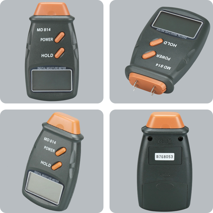 Yukarıdaki görselde MD814 ahşap, tahta ve ahşap benzeri nem ölçer cihazın farklı açılardan görünümünü görebilirsiniz.