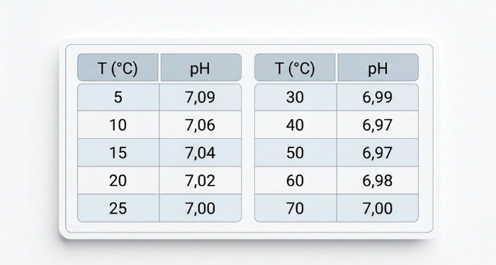 PH 7 tampon çözeltisi, nötr referans noktasında sıcaklığa göre farklı pH değerleri gösterebilir. Kalibrasyon işlemlerinde tablo üzerindeki sıcaklık karşılığı esas alınarak daha tutarlı sonuçlar elde edilebilir.
