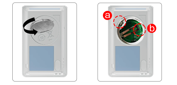 2 - Cihazın pilleri ikinci görselde görülen "a" parçası pilin altında , "b" parçası pilin üstünde olacak şekilde pil bölümüne takılır.