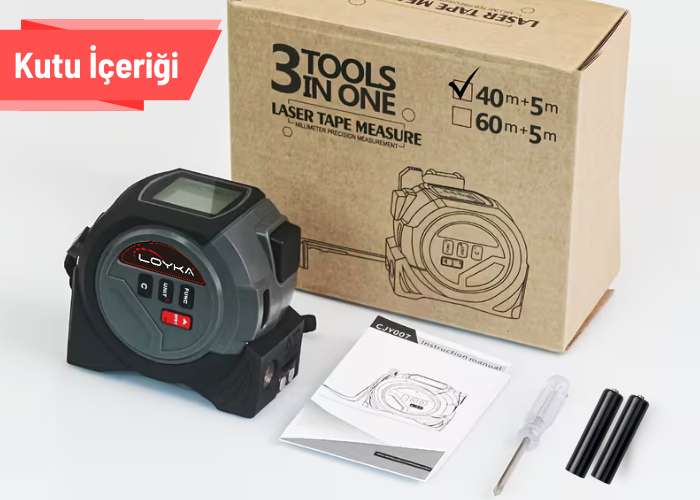 - Loyka TP40 cihazının lazermetre özelliği ile uzunluk, alan, hacim ve Pisagor ölçümlerine kadar tüm ölçümlerinizi anında ve kolayca yapabilirsiniz.