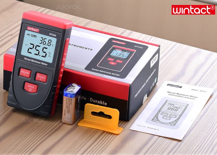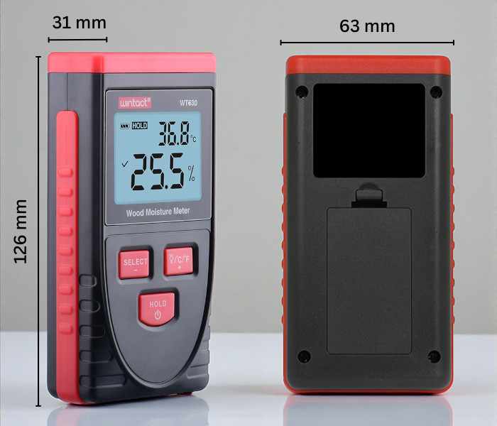 Wintact WT630 manyetik ahşap, tahta ve ahşap benzeri malzemelerde nem oranının hızlı ve pratik şekilde kontrol edilmesi için geliştirilmiş, kullanıcı dostu bir nem ölçüm cihazıdır. Temassız ölçüm yapabilen arka sensörü sayesinde yüzeye zarar vermeden ölçüm imkanı sunarken, aynı zamanda bulunduğu ortamın sıcaklık değerini de ölçerek yapılan nem kontrolünün daha sağlıklı değerlendirilmesine yardımcı olur.